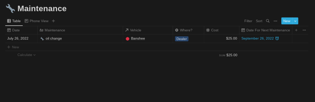 - Store all of your vehicles: the make and model, Mileage, Oil Type and Amount, and so much more.