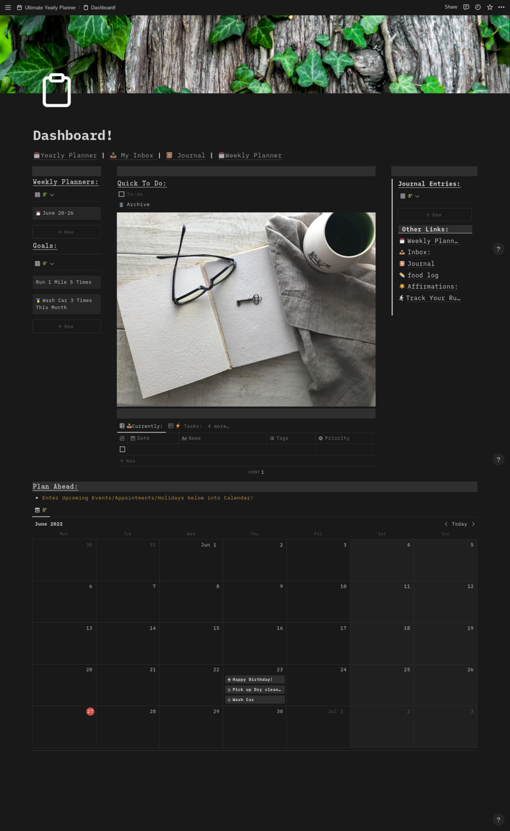 • Dashboard that is easy to look at and has links to all the areas in the planner.